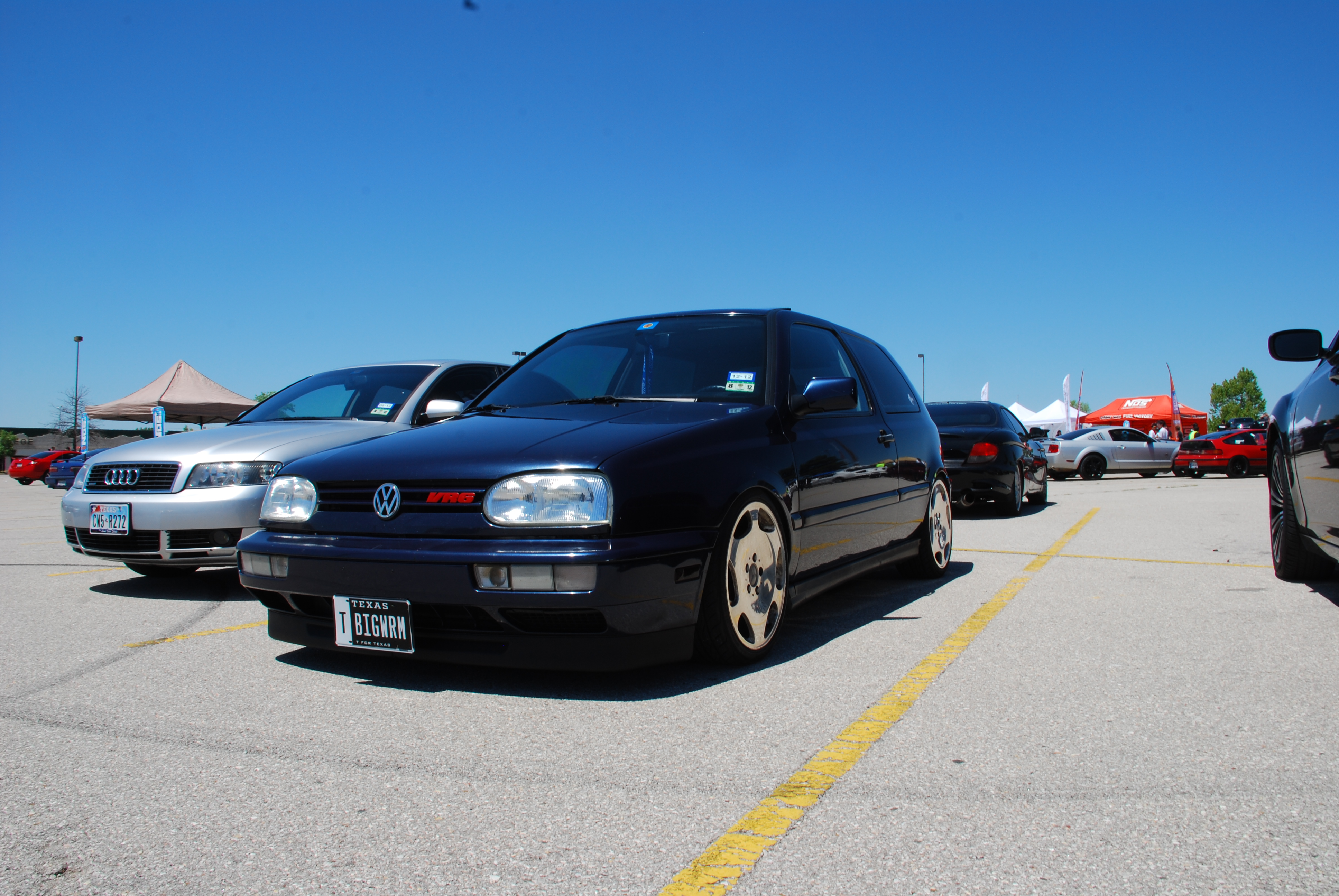 MK IV (or is it MK V) VR6 golf slammed on some Mercedes wheels. I love vanity plates.