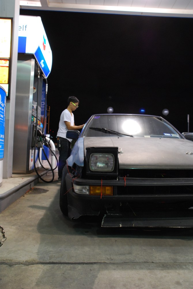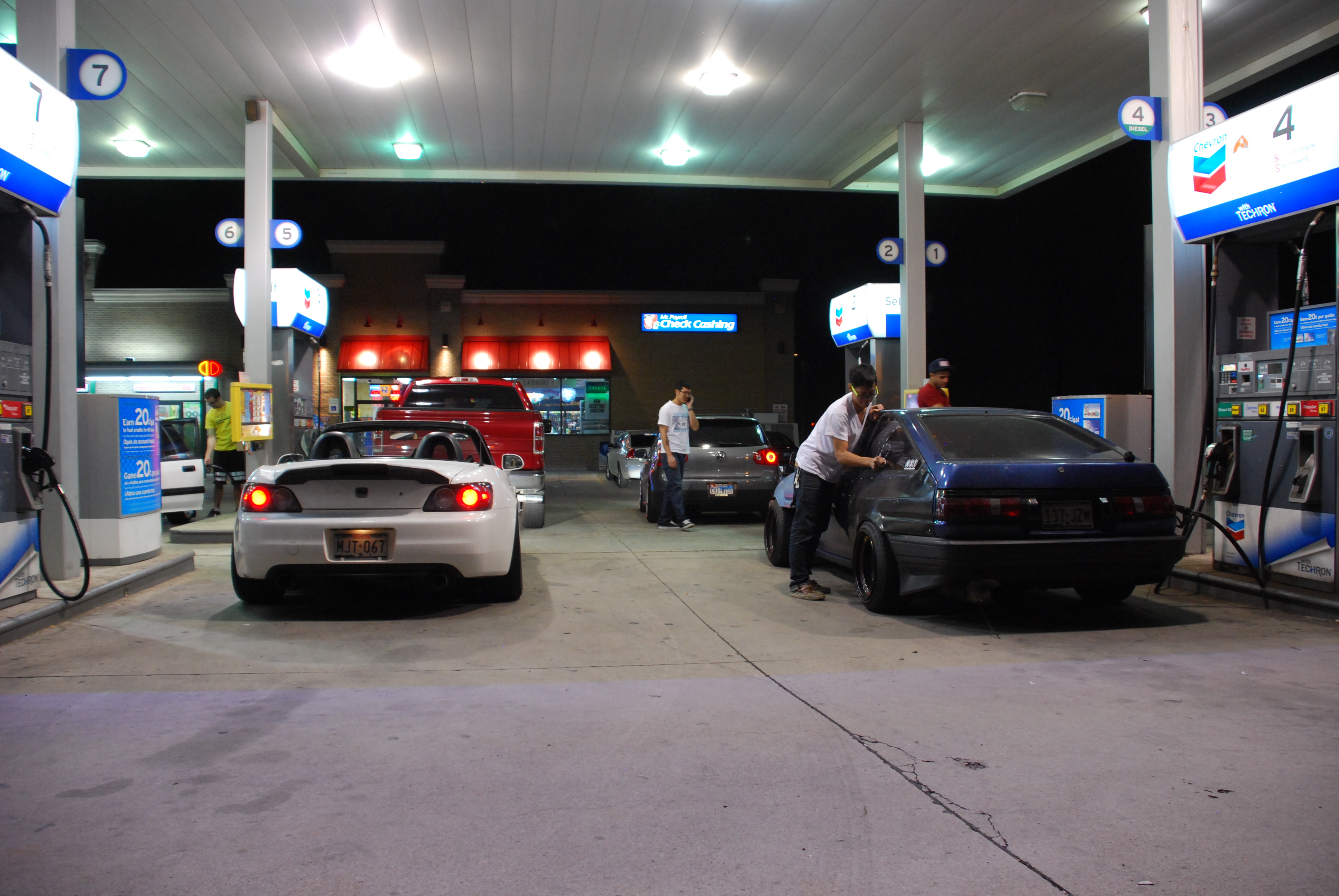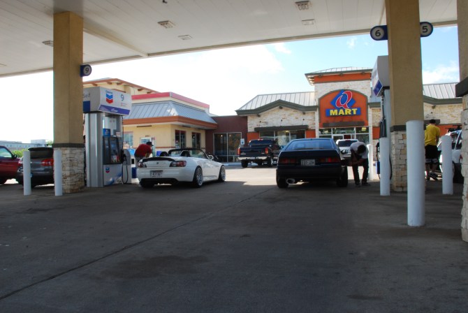 Our first pit stop: The local Chevron. In Texas we pump 93 octane, thankfully. Alan has a funny story about how high school girls hit on him as we were prepping for the trip. (Ask him about it)