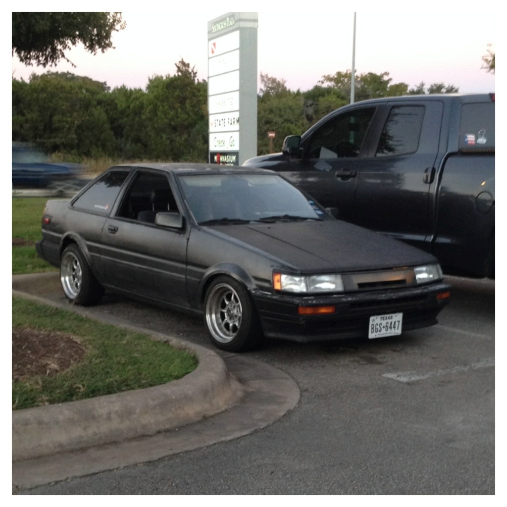 I had worked out a deal with my buddy Joseph (who has a 20v silvertop swapped 87 sr5 coupe, converted to gts). He recently picked up some STANCE coilovers so he was selling me his old set up — sw20 kyb agx shocks, techno toy tuning advanced strut tube spaces with battle version camber plates and drop in collars/coilover spring.