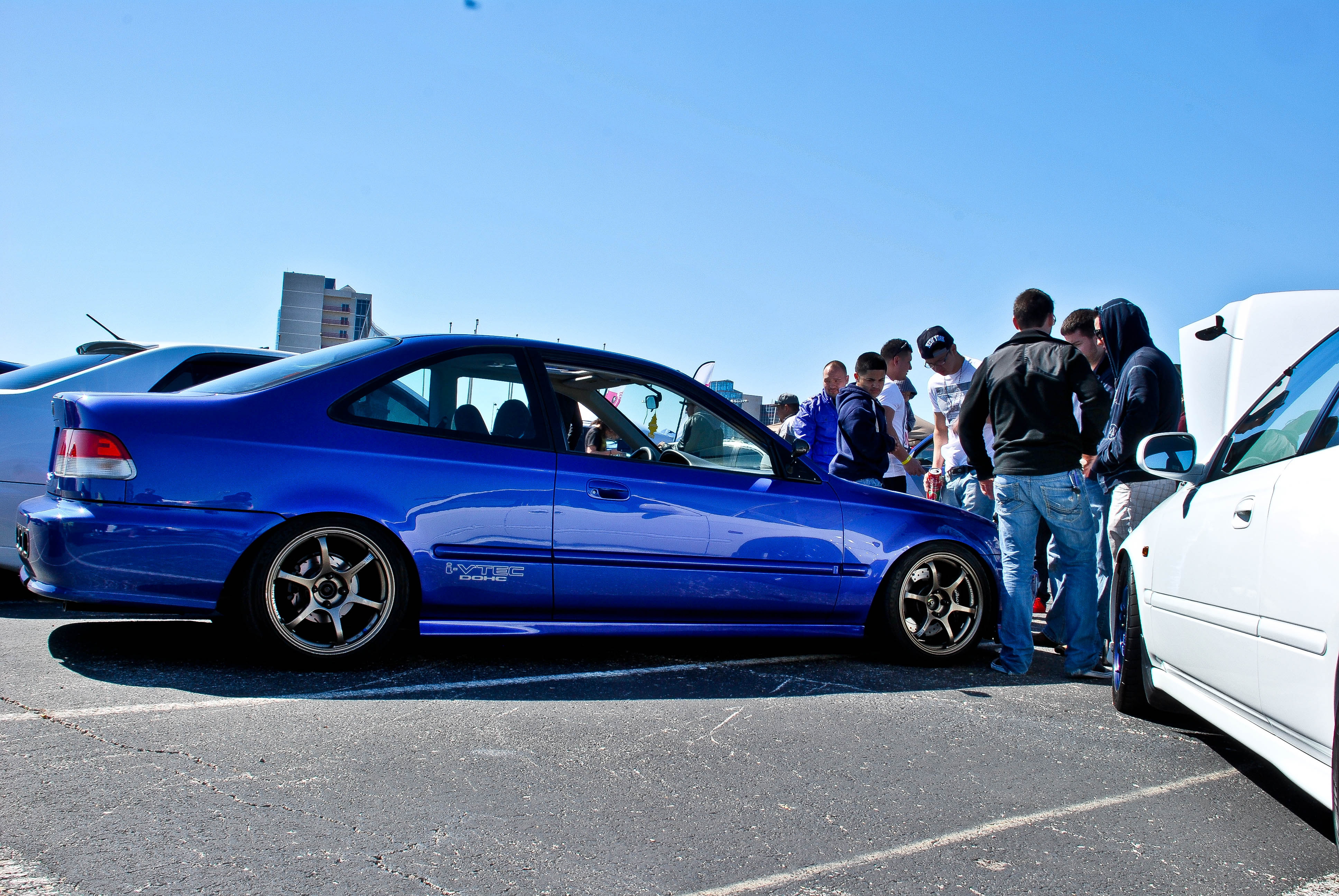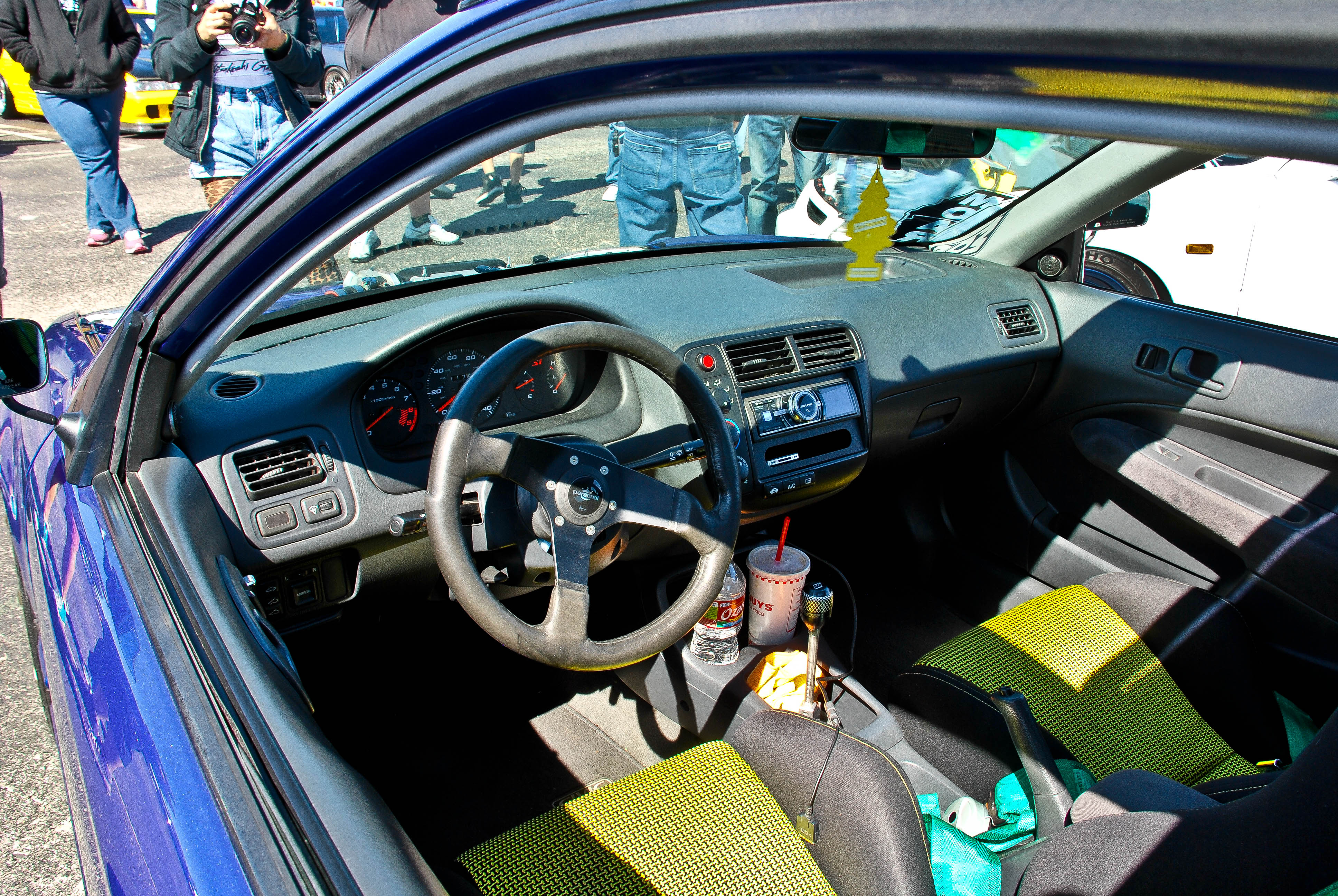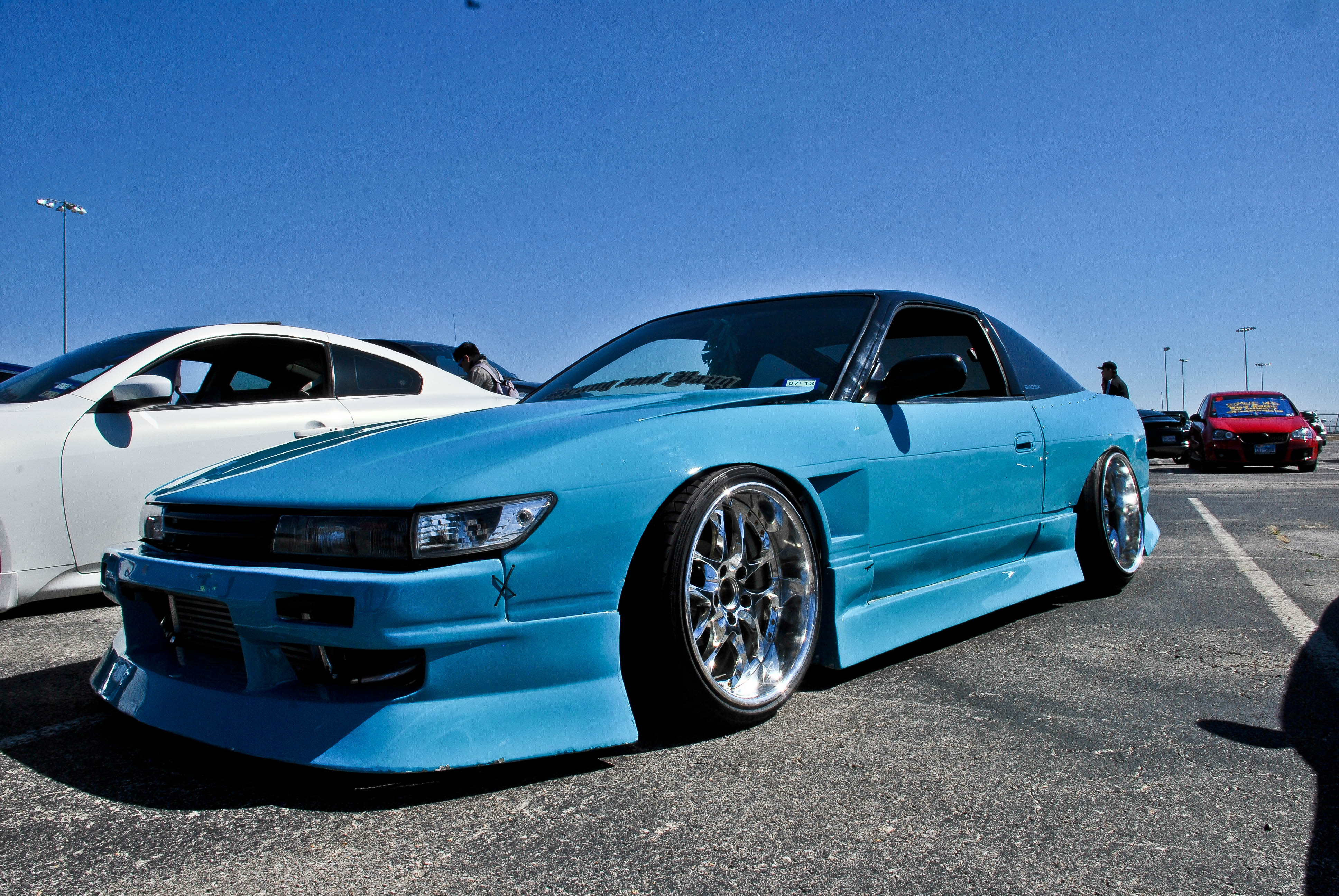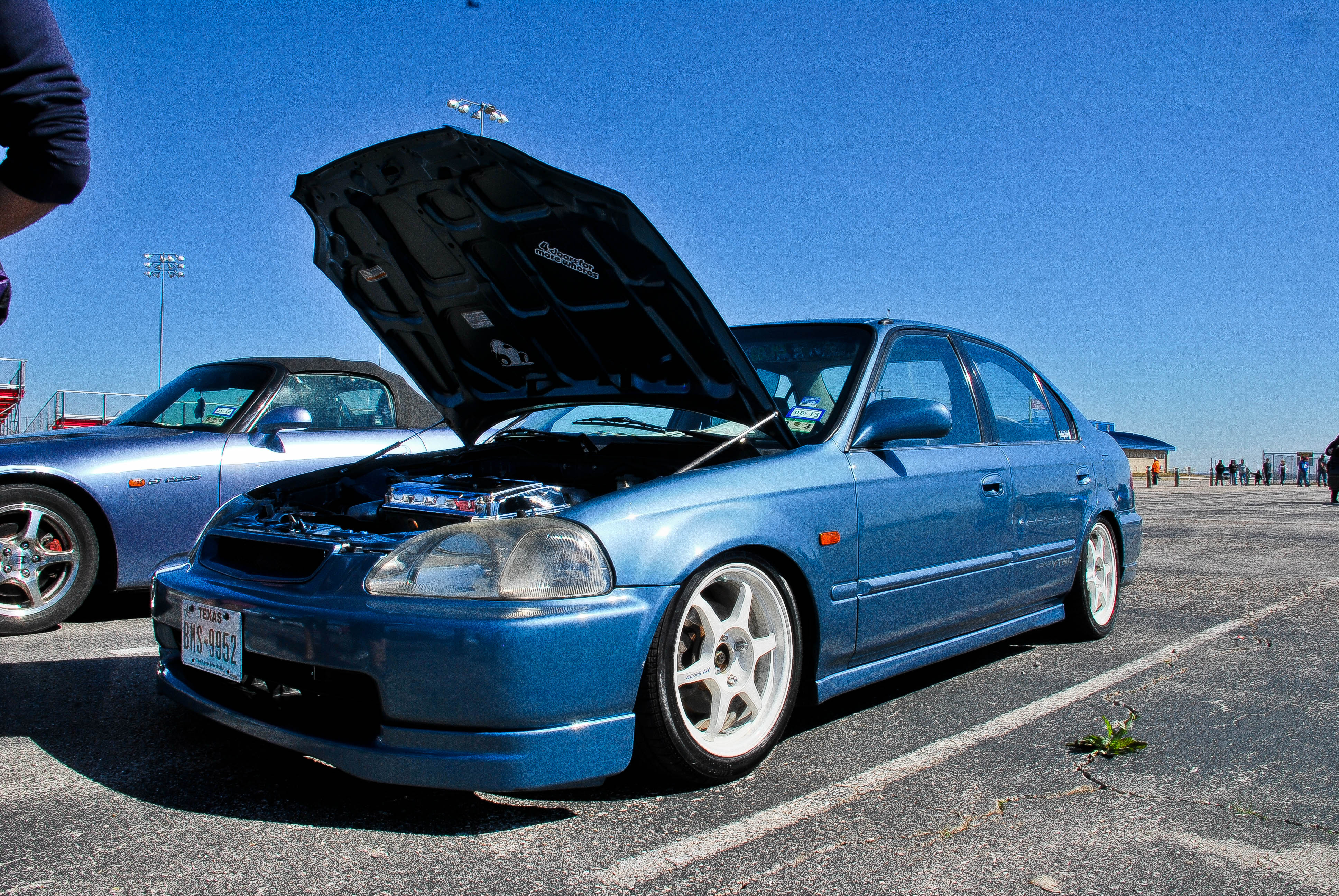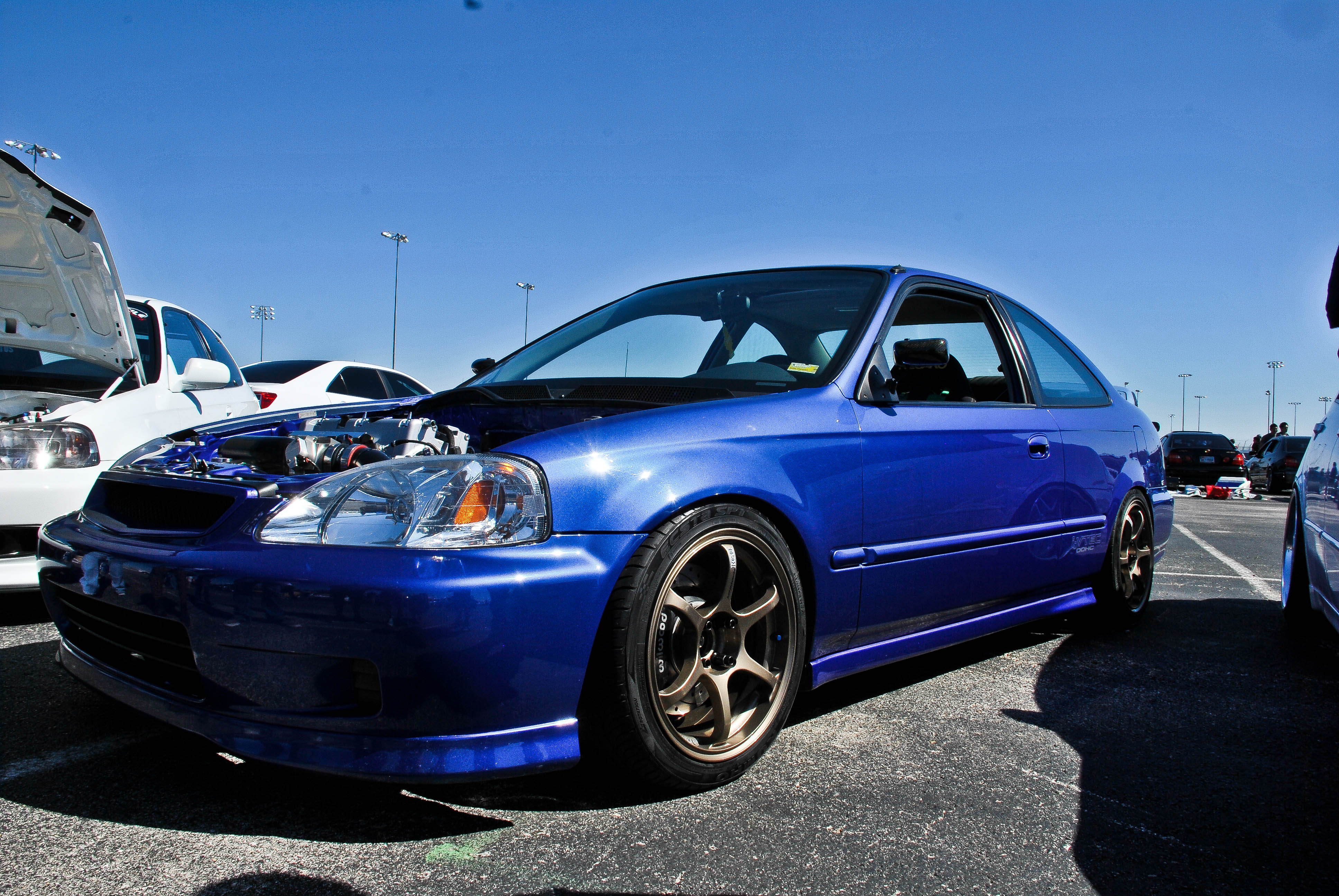 This EK sedan was in my top 3 favorite cars at the show. It was the perfect height, had amazing wheels, and was all around clene. This color was also amazing. I also noticed the sir headlights which made me happy.