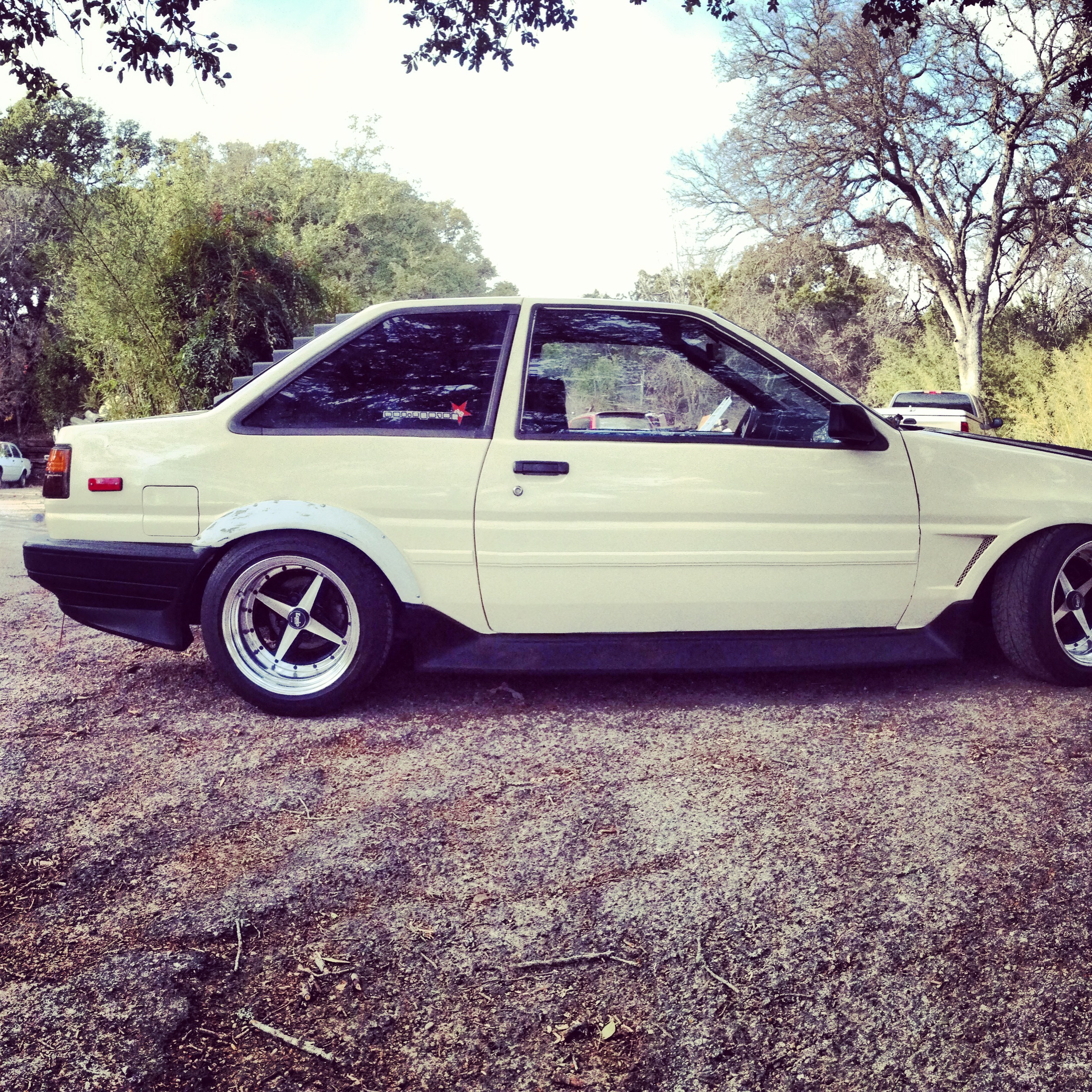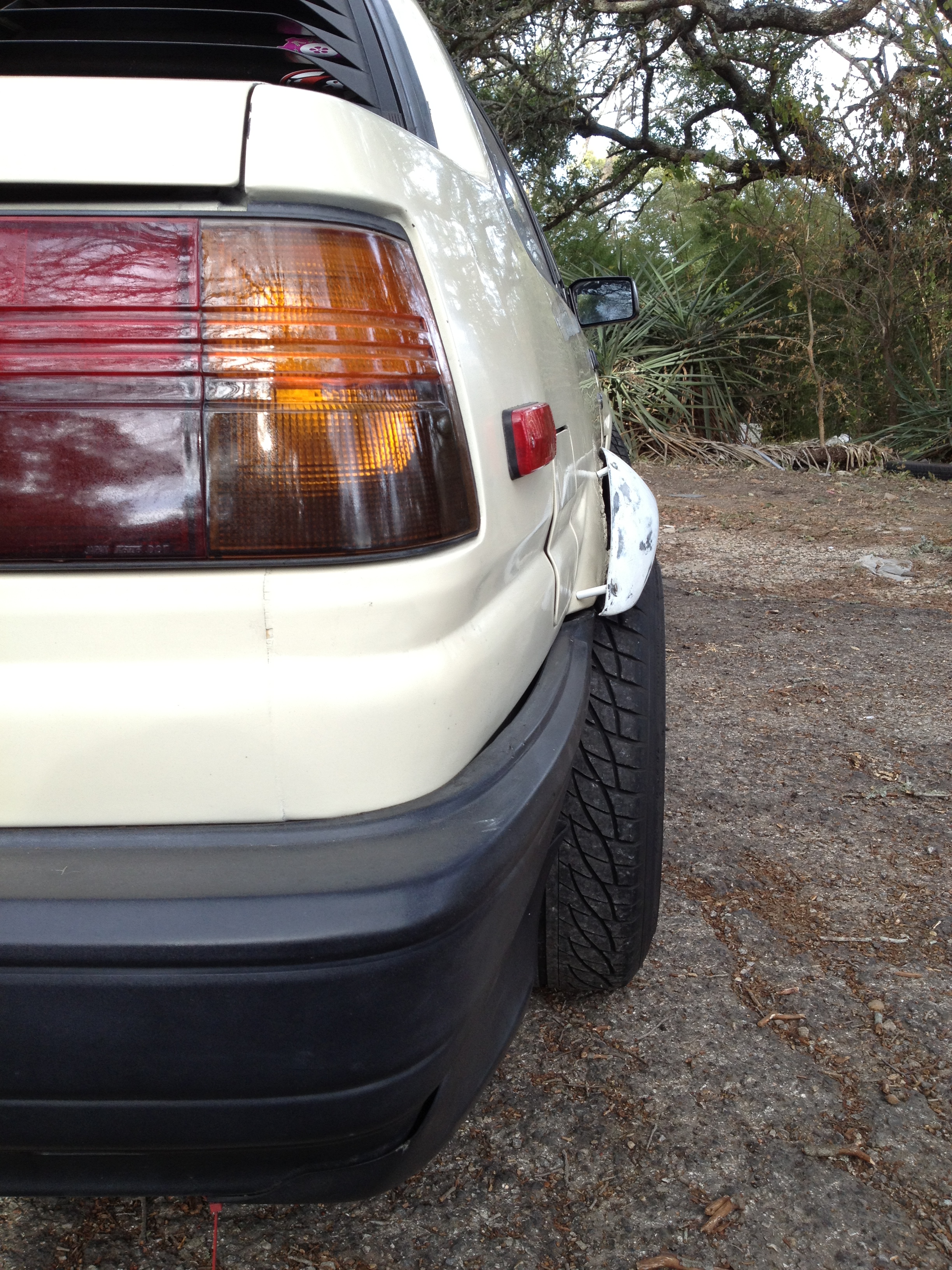 So after the coupe was painted, I decided it was about time to get the car looking like a whole car again. Most people around town knew me as the guy with all the 86’s (which happen to always be missing a body panel). So I decided to piece the coupe together to be as close to 100% appealing to the eye as possible. So first thing first, was to get the rear over fenders to fit the 15×9 -41 rear work equips.