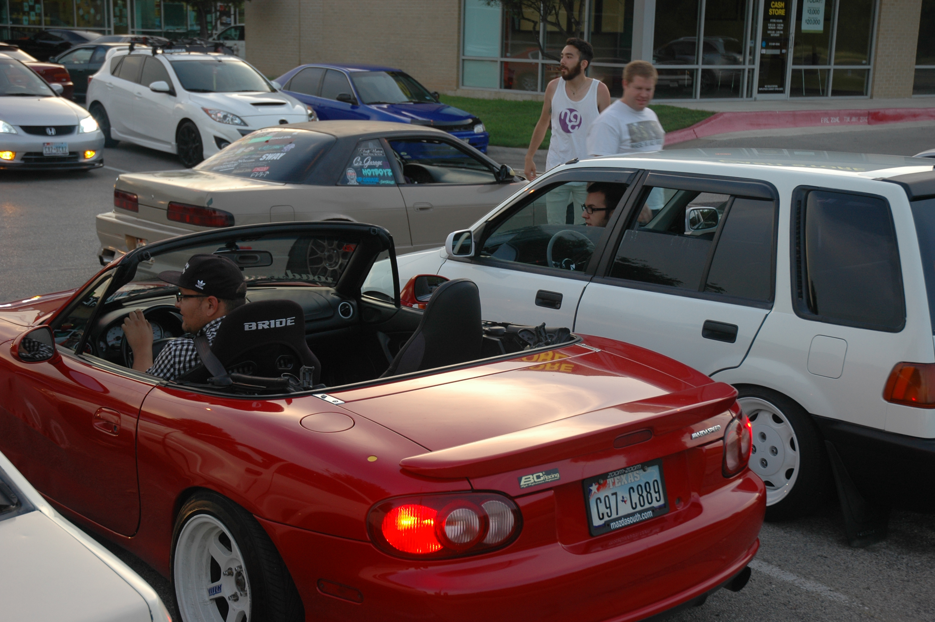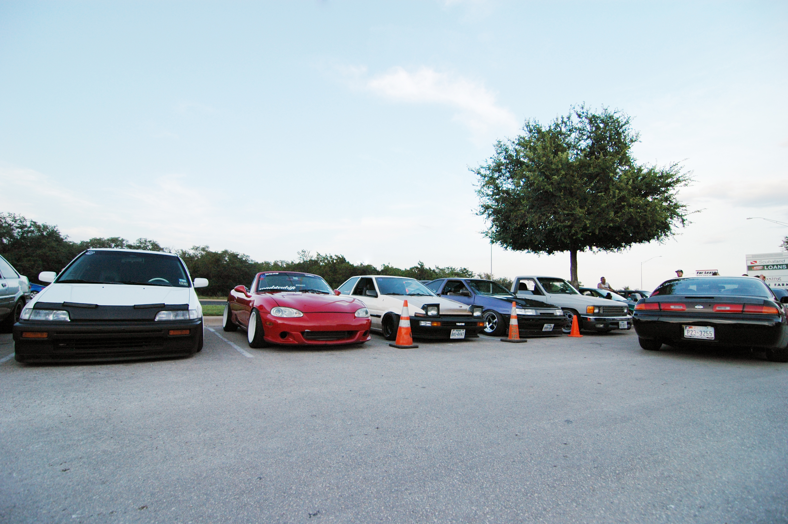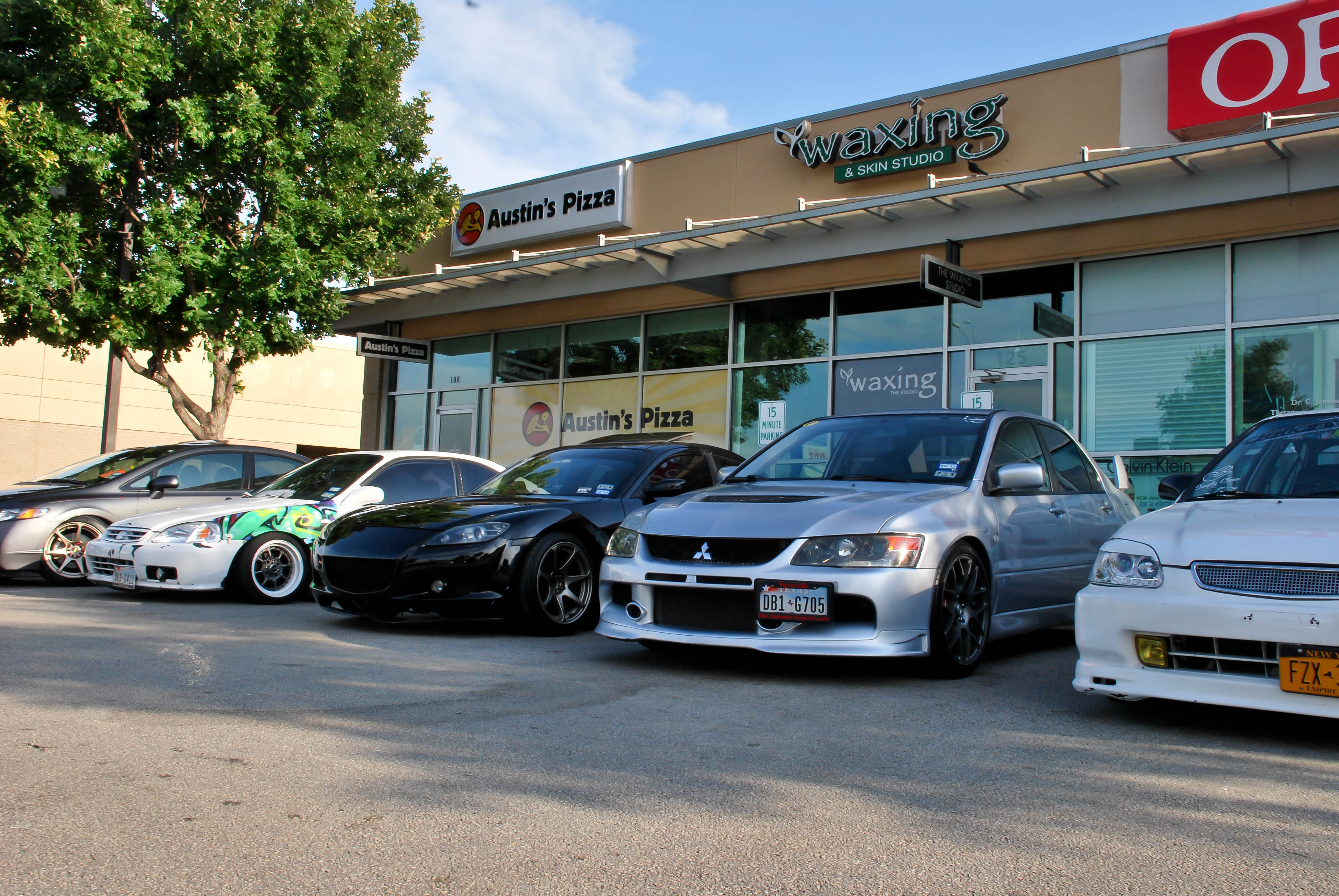 On Saturday Renegade and Sarapbuhay held a meet in the parking lot of Thaison’s slaughter lane Pho Thaison shop. It was a lot of fun with a turnout larger than we were expecting. At one point Thaison was even worrying about whether or not all the cars would fit in the lot, but sure enough everyone did. Jash holds regular meets under the Renegade alias up at k1 speed in Austin, Texas. From what I heard the initial reason for this meet was a farewell deal for Sarapbuhay. I’d like to think it was really because it was my birthday, but hey I’m conceited. The meet was interesting in that all sorts of cars showed up for the good time. Unlike most meets this went off without a hitch in that there were no burnouts or other forms of stupidity that usually occur at these things. It was a nice breath of fresh air and since it was in Austin, I got to see a lot of good friends that usually don’t take their cars out for other meets.