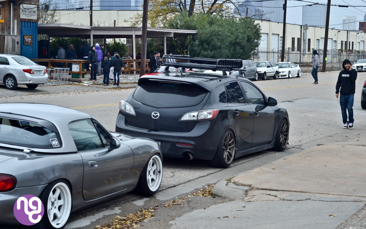 We finally arrived at Moon Tower Inn where the Mayday Garage Dallas Chapter and Austin chapter met up, but since we where kinda late it was mainly the cars from the Austin chapter that arrived. Some of the local cars from Houston also came out too. We all chilled at Moon Tower Inn for some food and beer. You must try their hotdogs and the specialty crafted beers they have on tap. We met the dope people from Mayday Garage and other cool car people that all appreciate one thing…. cars. Not gonna lie, I was kinda tipsy after after this pitstop, but alcohol does keep you warm though.