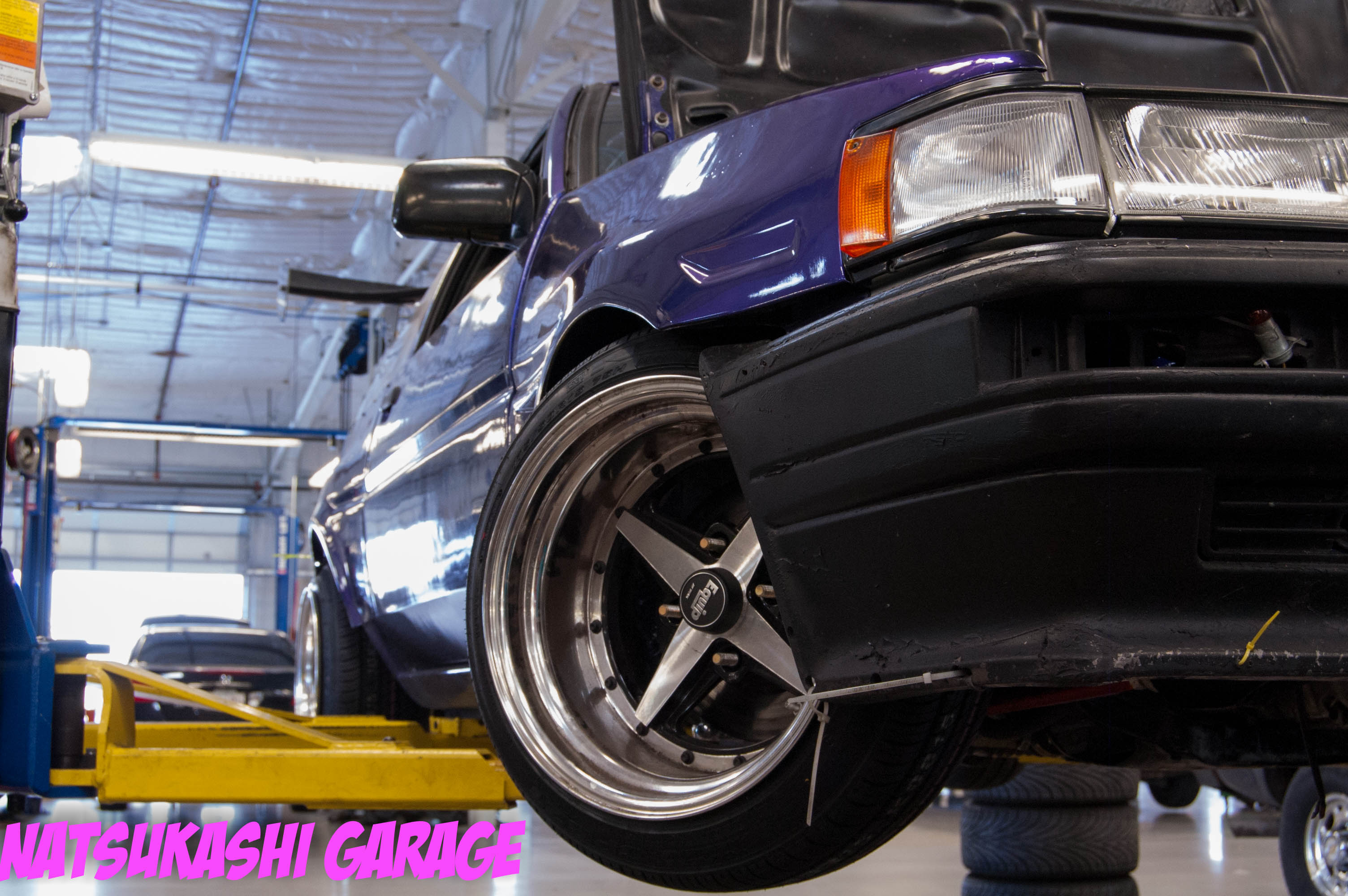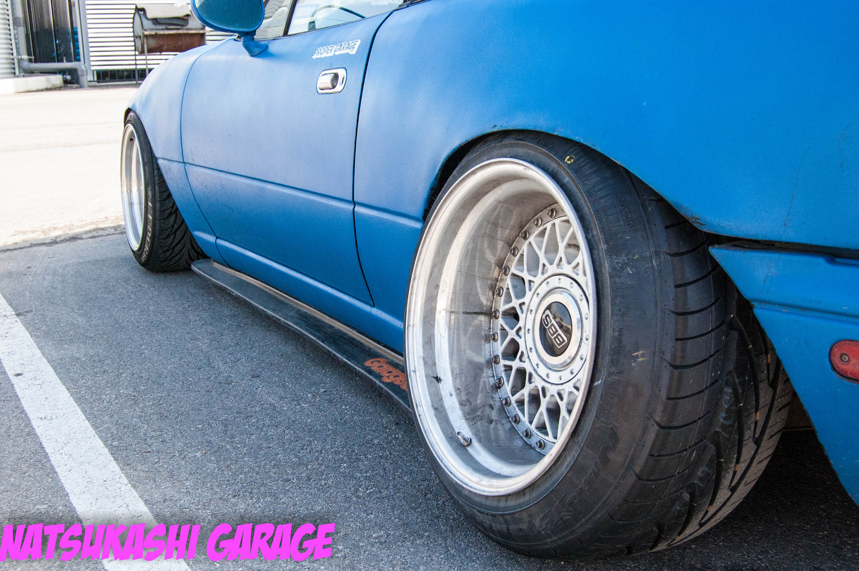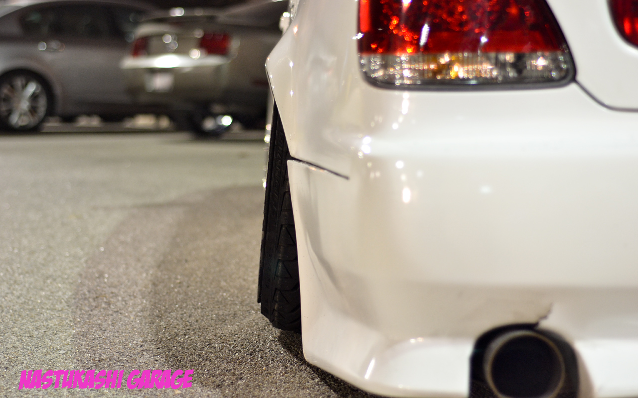 Lam’s now functional Genesis rolling on light weight Buddy Club P1 wheels with Potenza tread. The guy is like a wheel whore, just like me.