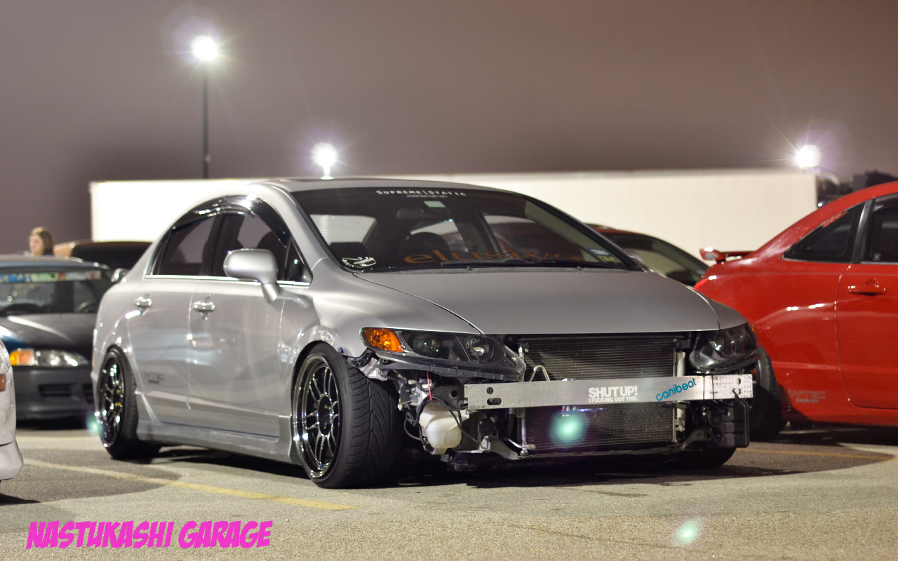 Still look good with the bumper missing. This Civic was infamous in the last Eat Sleep Meet in Houston.