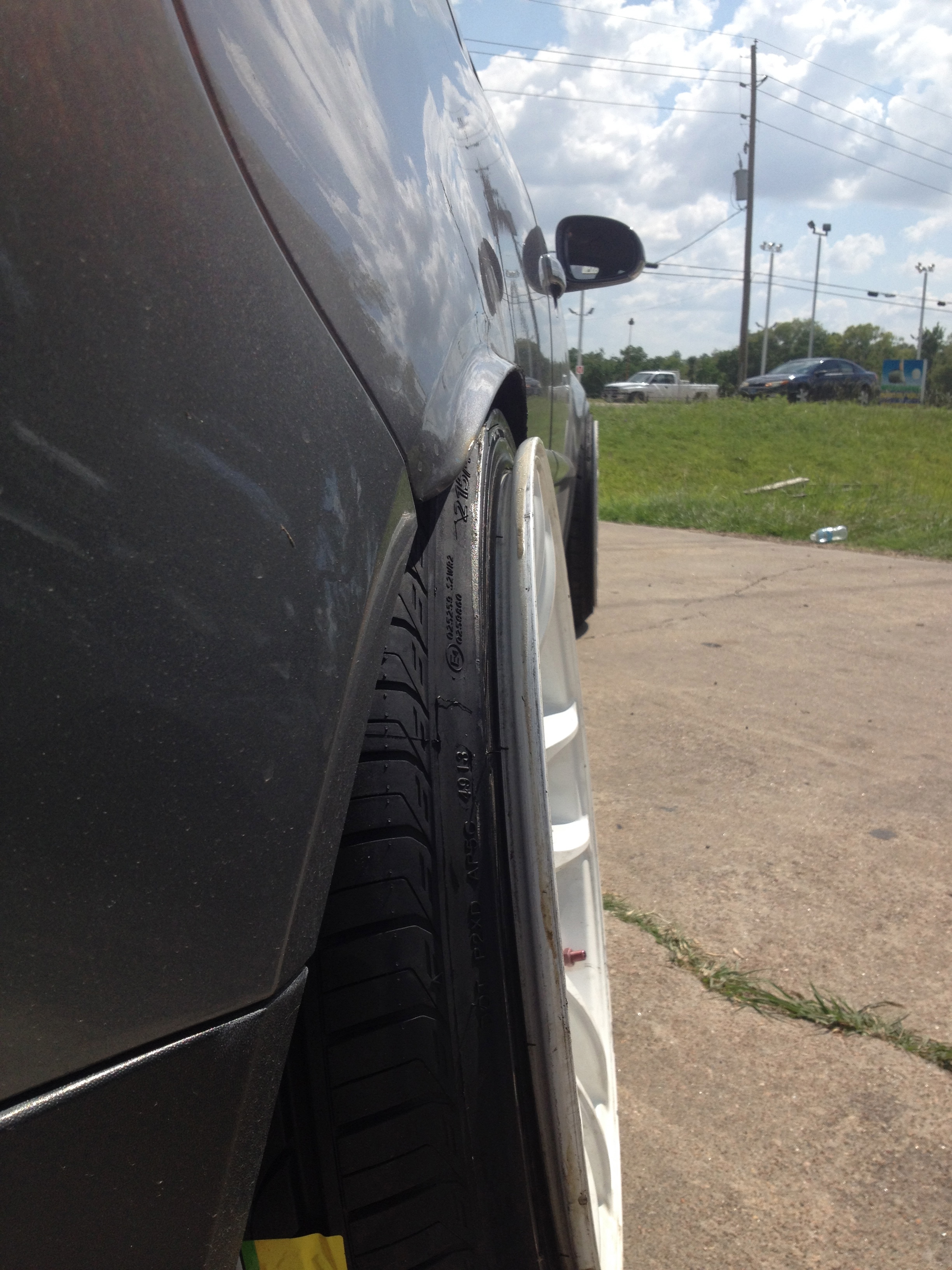 I recently had my tires replaced on the my Work Kiwamis. I was still rubbing when I had 4 people the car even with the camber. I was embarrassed with all the rubbing and my friends making horrible noises when I rub that I wanted to change my tires. I had 225/35/18 tires which did better then the 225/40/18 but the 225 tire width was a tad too wide. I called up Gabriel in the morning and was able to get a pair of 215/40/18 tires and would arrive in the afternoon.