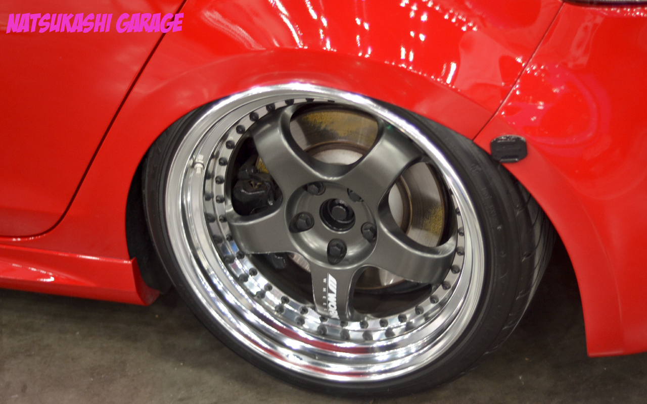 Really lovin the red Work center caps. A nice touch to make the Kiwami pop. Demon camber is starting to get popular with increasing hate too haha. I personally love it, and Im glad to say I did demon camber on the Miata Jan 2014, before it got popular, in the States. Next year though, the Miata is going to have a different stance. You just have to wait and see.