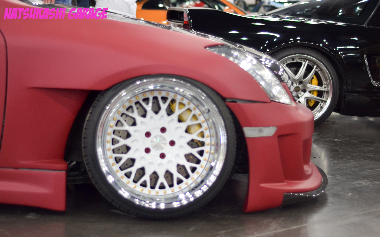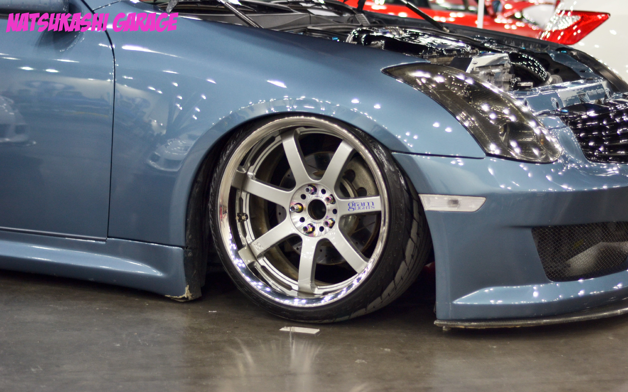 G35 was pushing the fitment envelope. This build is the other end of spectrum with the slam, tuck, poke, stretch scene. I like this style the most, and definitely stirs controversy in hearts of some car people.