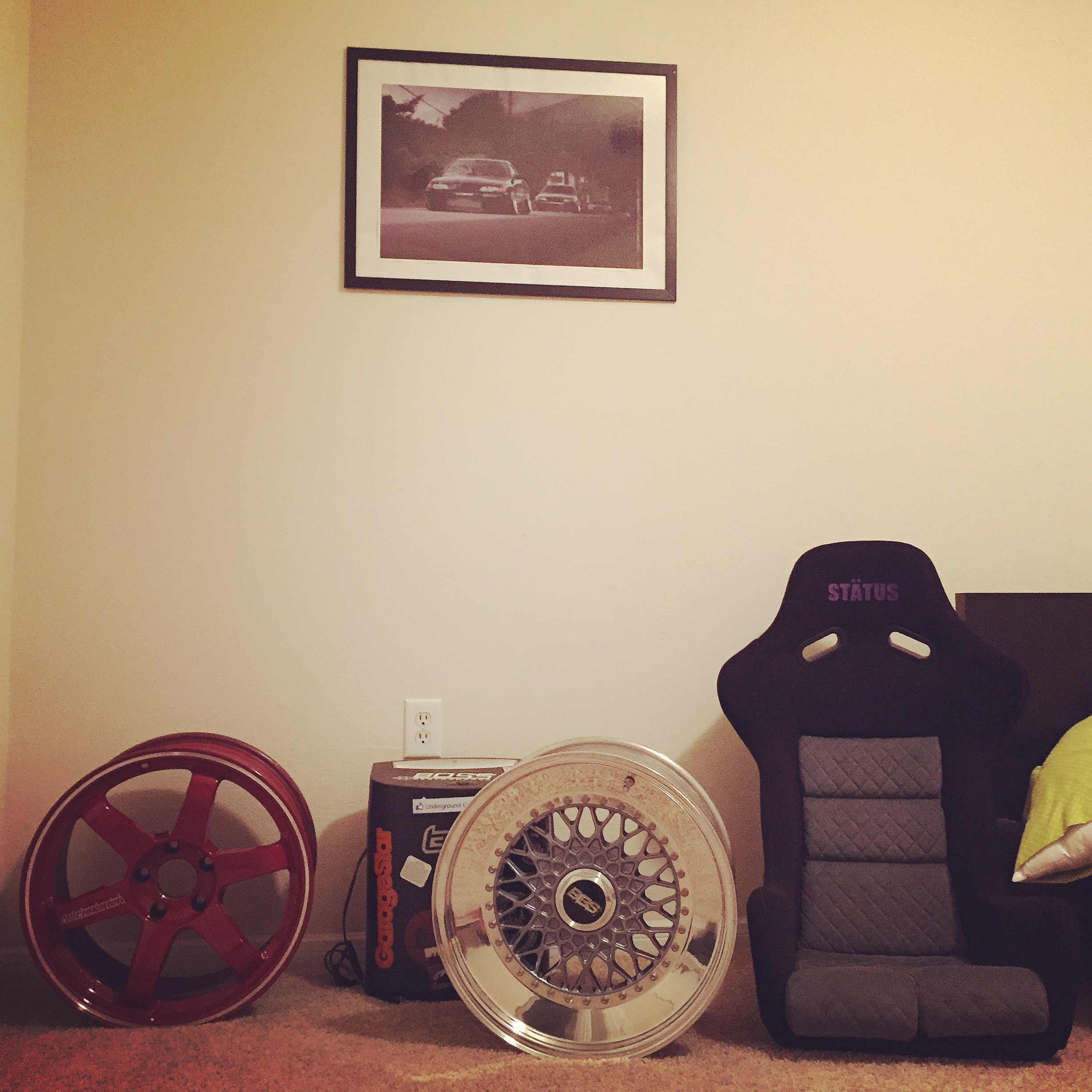 The cool thing about the BMW M3 forums, is there are people with money that sell stuff for great deals! I recently sold my Work wheels and I was itching to get another set of rims. While I was browsing the forums I found a great deal on some Volk TE27RT! The RT means ridged tuned which is stronger than the TE37SL but weighs the same. Better yet the TE37RT come in the red with the VOLK logo stamped and engraved on the rims. Volk is starting to do this to avoid the knock offs just putting “volk” stickers.