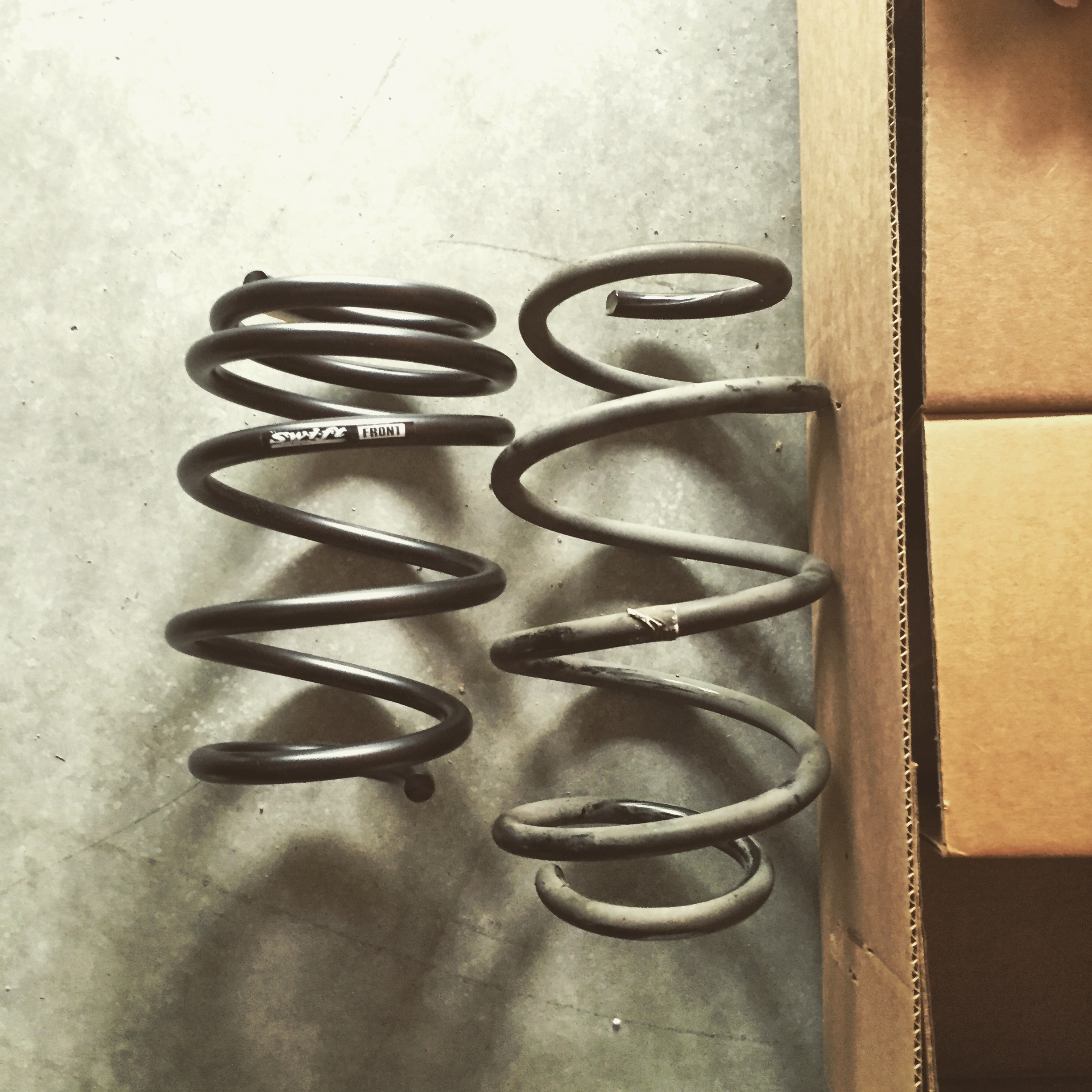 You can the Swifts are shorter but have more coils, for a more firmer ride. The drop is roughly 1″ fronts and 0.6″ rears. Very conservative and wasn’t slammed like the GTI and Miata. I guess as you grow older your taste changes but I still respect the slammed car out there. I get it and its a style.